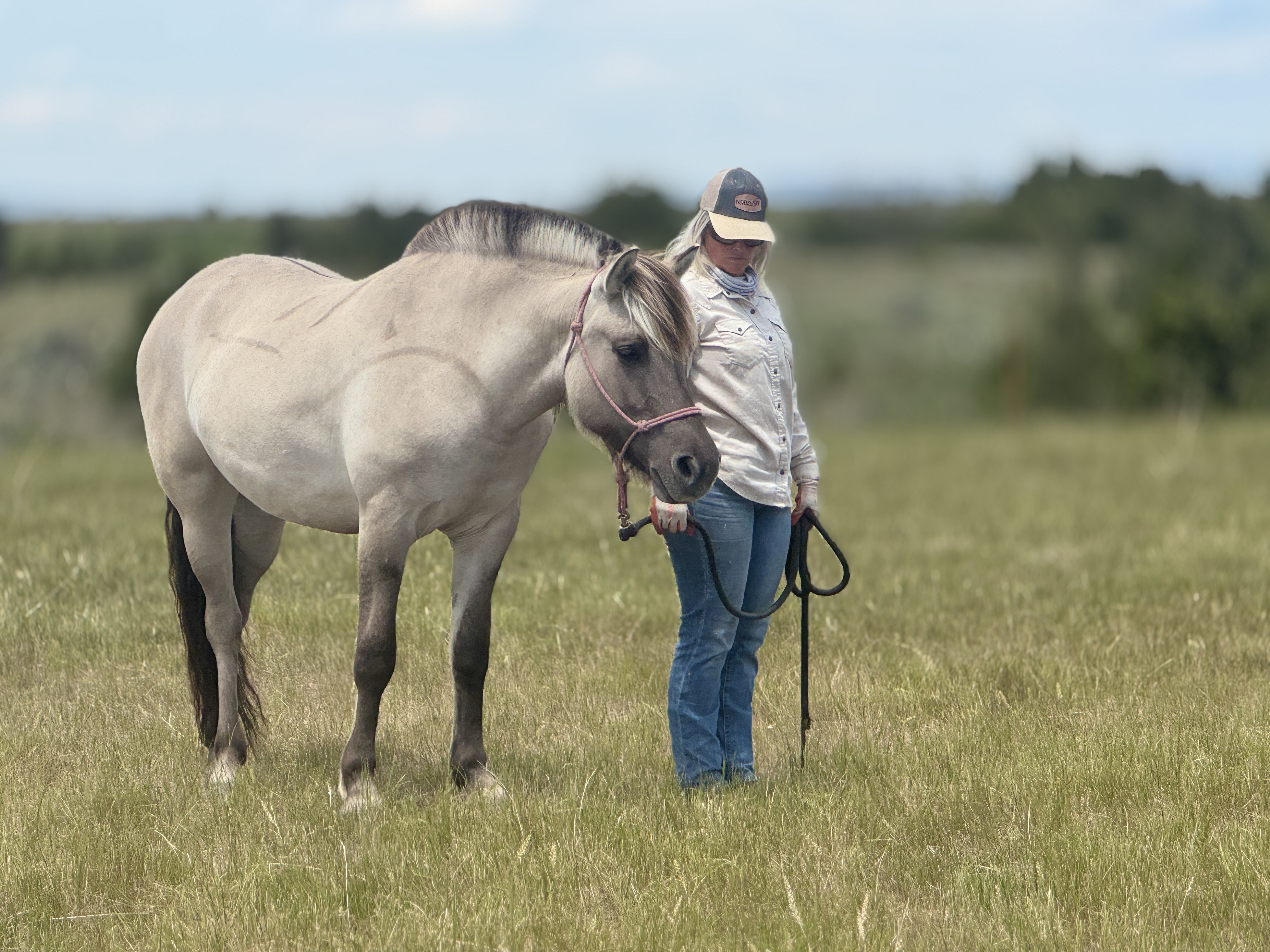 As a breeding program, we can attest to the excitement that comes from adding new bloodlines to a herd. We’ve watched German imported horses for some time, and have even imported one of our own (Riano) in 2024. We’re now excited to be working collaboratively with Sally Allwardt and Kris Fritz to be adding Heidi to our program as an up-and-coming program star and delightful brood mare. Heidi is out of Hella by the well-known Norwegian stallion, Hangvar Kry. Hella is a wonderful brown dun mare who will do anything for her rider from trails, liberty work and cross country. Heidi’s sire is the lovely grey Da Vinci (Draupnir). Da Vinci is a very talented stallion. His German performance test resulted scores of 8.3 as he also competes dressage, liberty work, cross country, trails and is also a schooling horse for children. Heidi, herself, was awarded with grades 7.7 and 7.8 as a “premium foal” as she displayed her walk and trot in front of German judges. She is very kind spirited and curious and we are anxious to watch her grow into a beautiful and athletic mare.